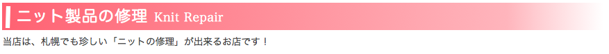 ニットのお直しは非常に難しい為、取り扱っているお店が札幌には数少ないのが現状です。